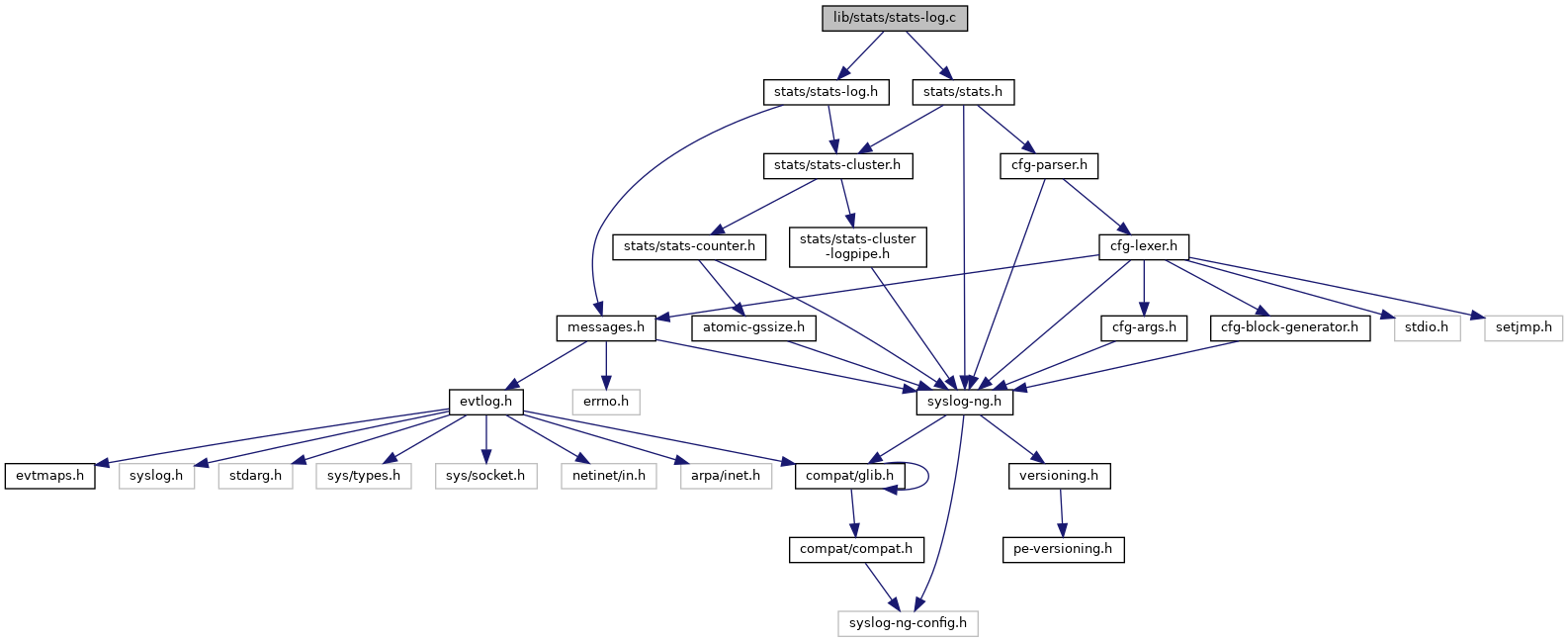 Include dependency graph for stats-log.c:
