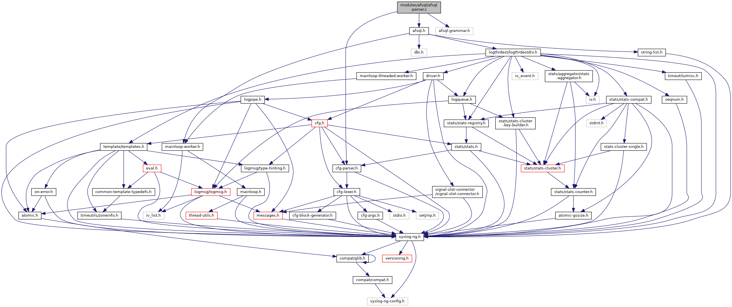 Include dependency graph for afsql-parser.c: