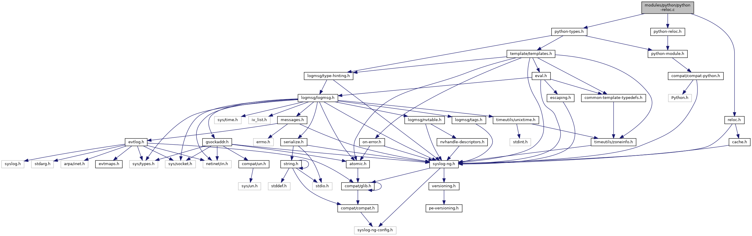 Include dependency graph for python-reloc.c: