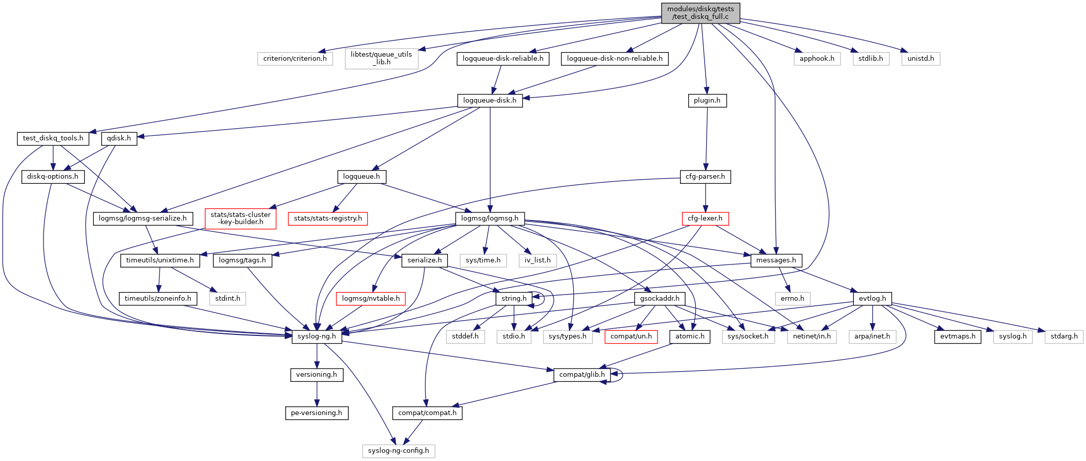 #include <criterion/criterion.h>#include "libtest/queue_utils_lib.h"#include "test_diskq_tools.h"#include "messages.h"#include "logqueue-disk.h"#include "logqueue-disk-reliable.h"#include "logqueue-disk-non-reliable.h"#include "apphook.h"#include "plugin.h"#include <stdlib.h>#include <string.h>#include <unistd.h>